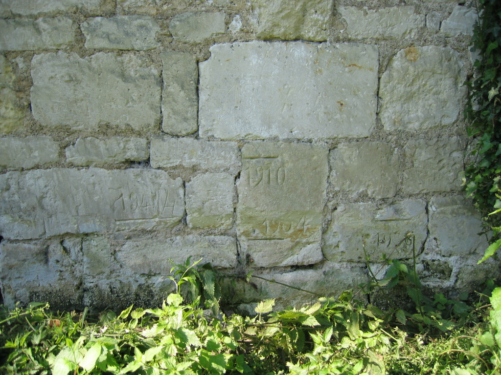 • Commentaires :  Sur pierres du mur,traits et années bien visibles mais beaucoup de végétation sur le mur (lierre et ortie) qui peut masquer les repères de crue – Hors inventaire de la DIREN de bassin