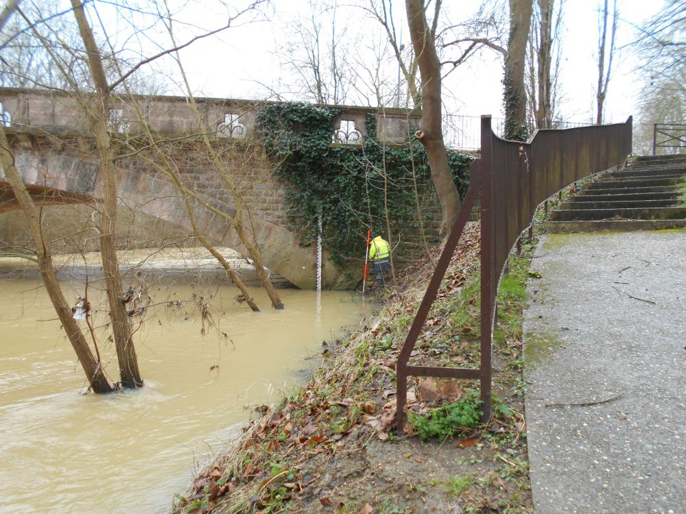 - Commentaires : Dépôt également visible sur ancienne échelle de crue mais non marqué car non accessible du fait de la profondeur de l'eau
