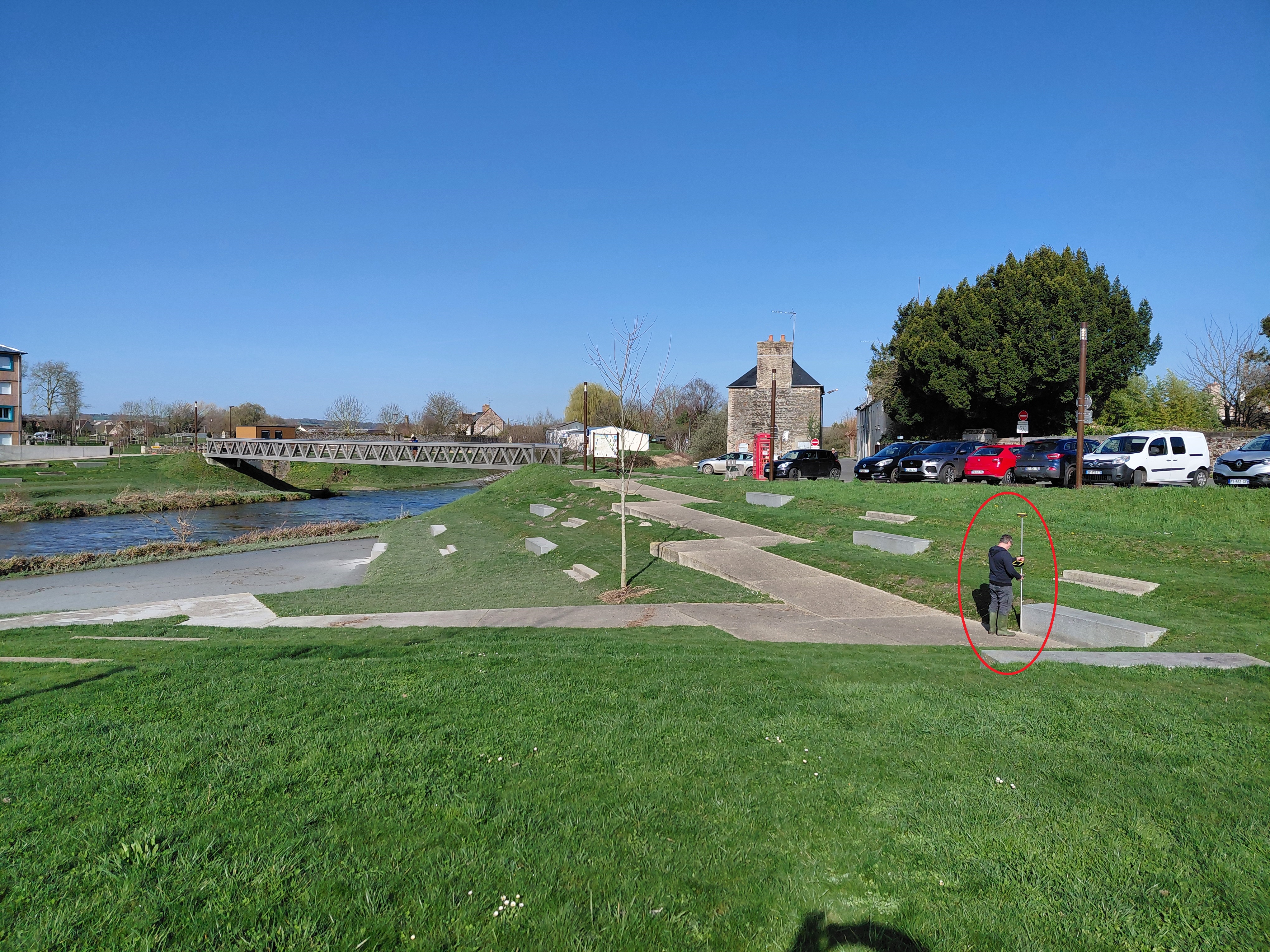 Sol de la passerelle, Chemin du Marais, derrière le supermarché.