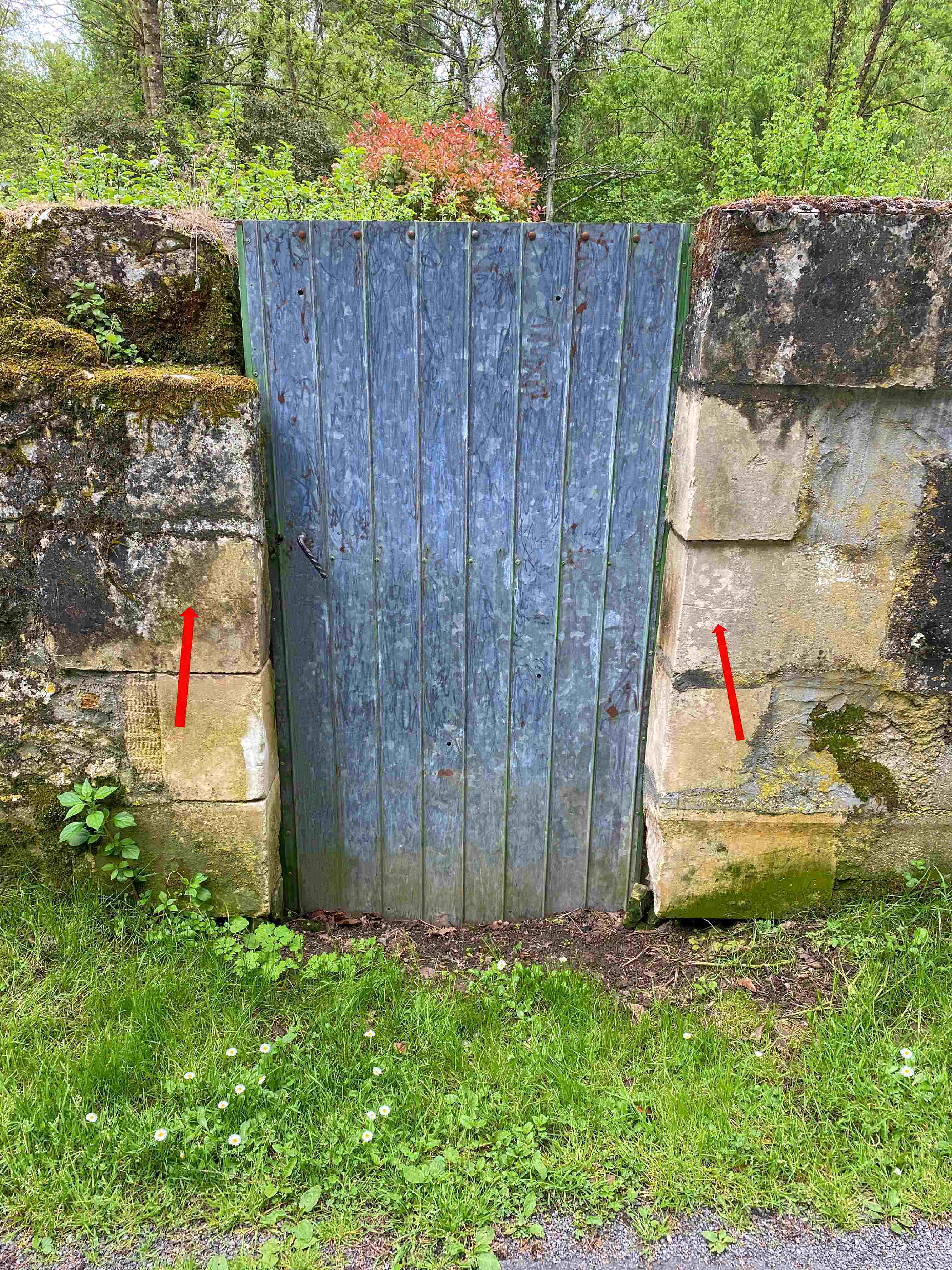 - Commentaires : Gravure de l'année 1961 à environ 96 cm du sol, sur l'encadrement (mur en pierre) de la porte du jardin.