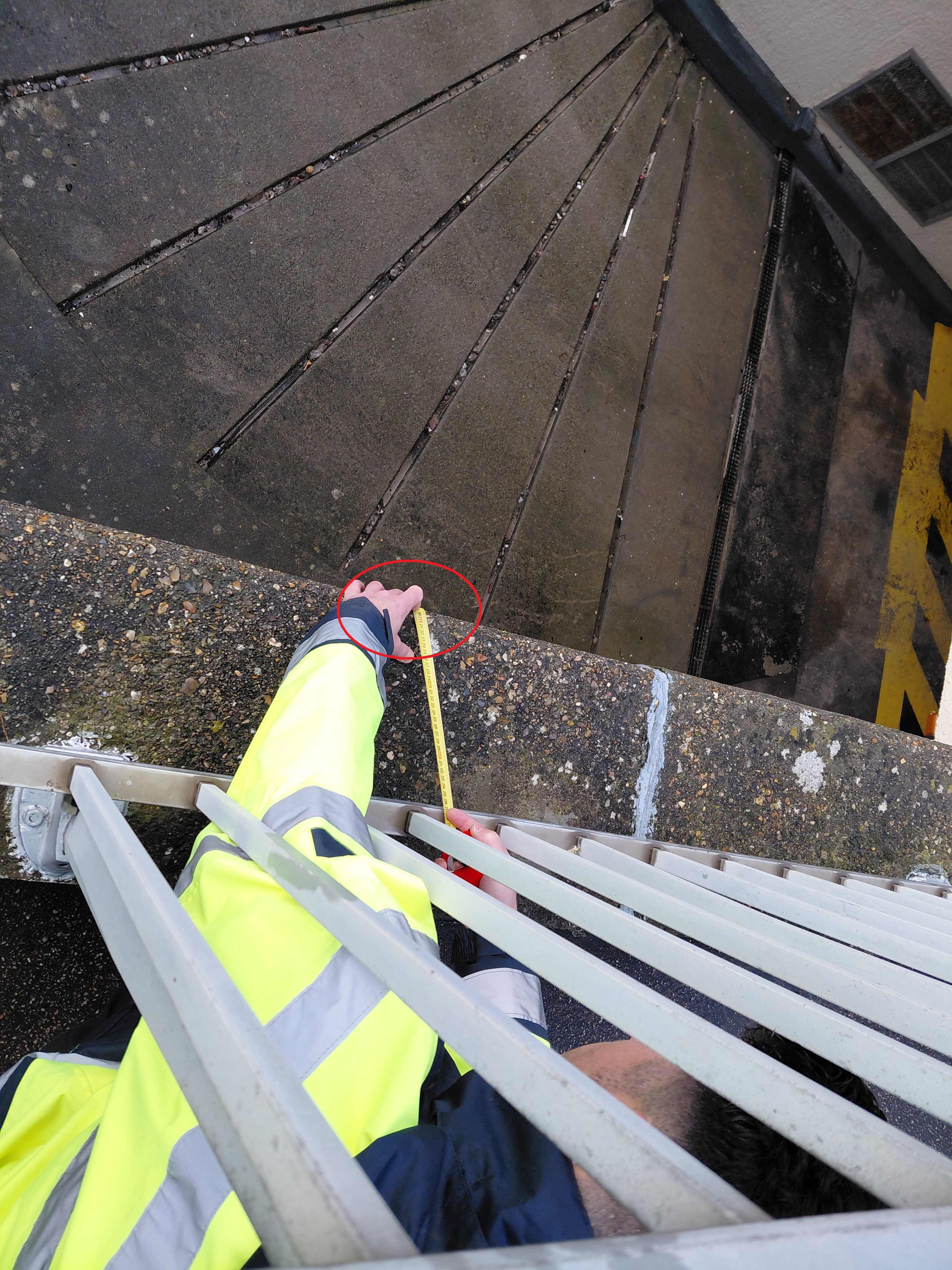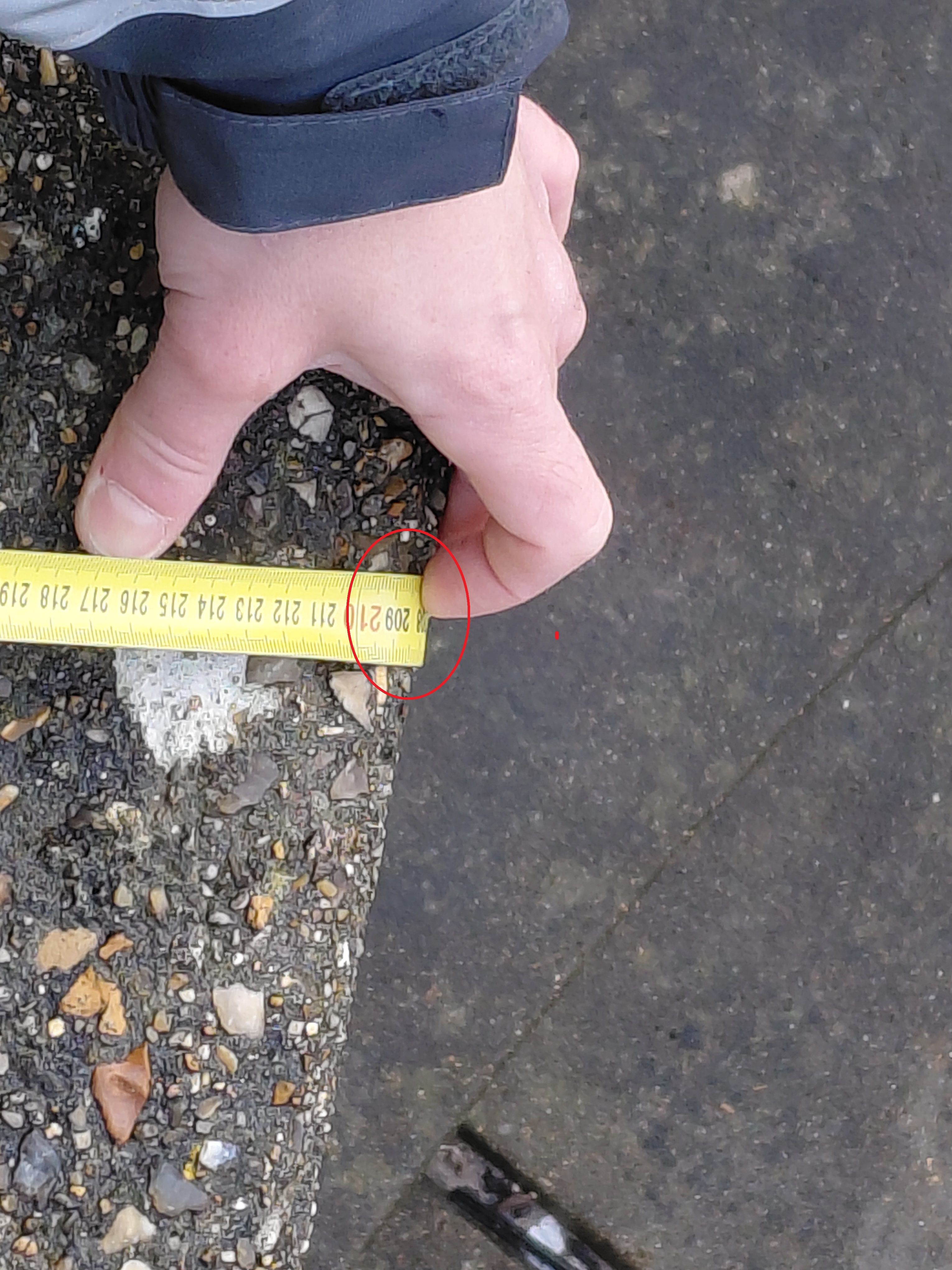 - Commentaires : Laisse de mer à 208 cm/ haut du mur de soutènement, au niveau du panneau "Danger roulez au pas"