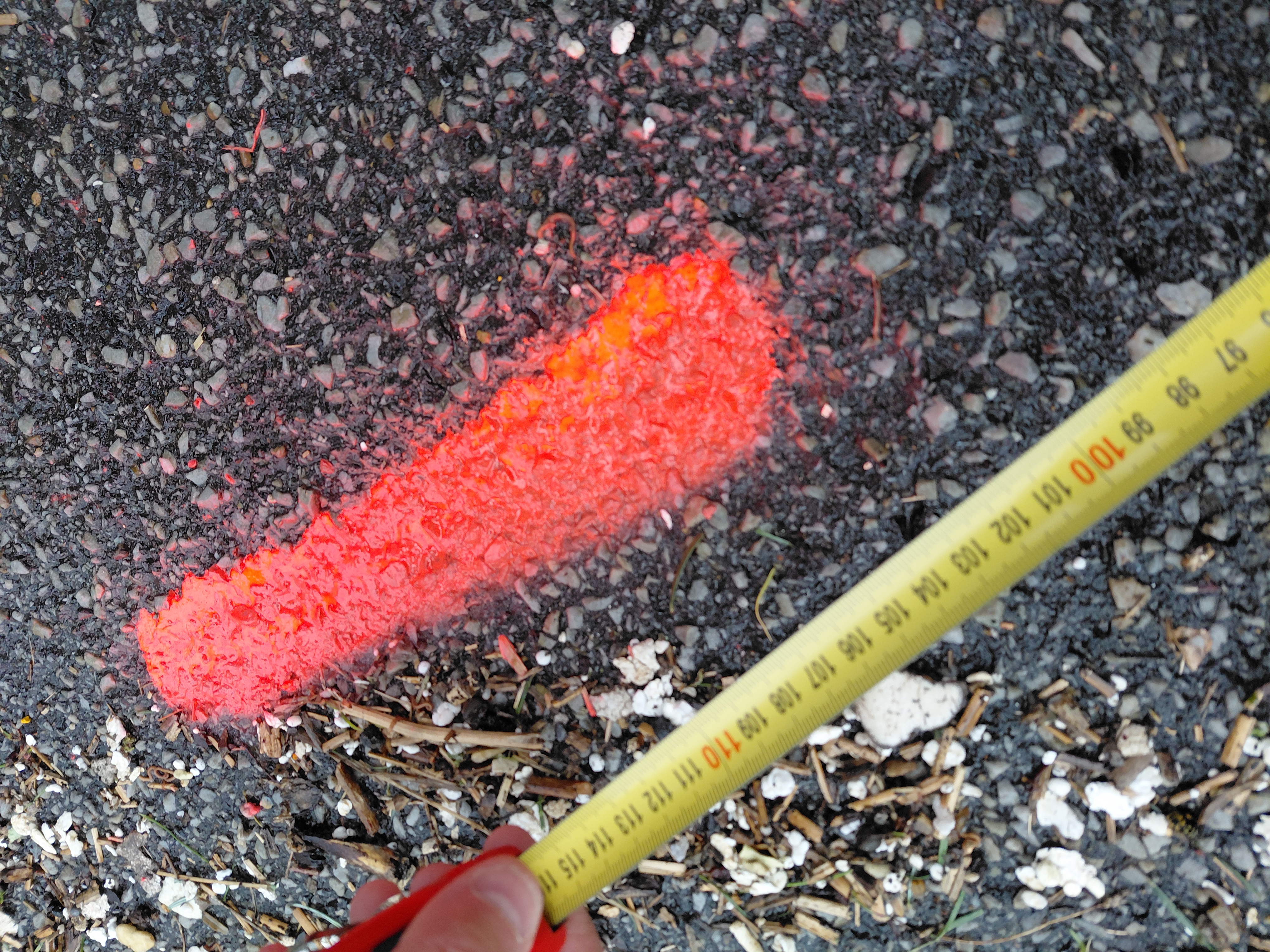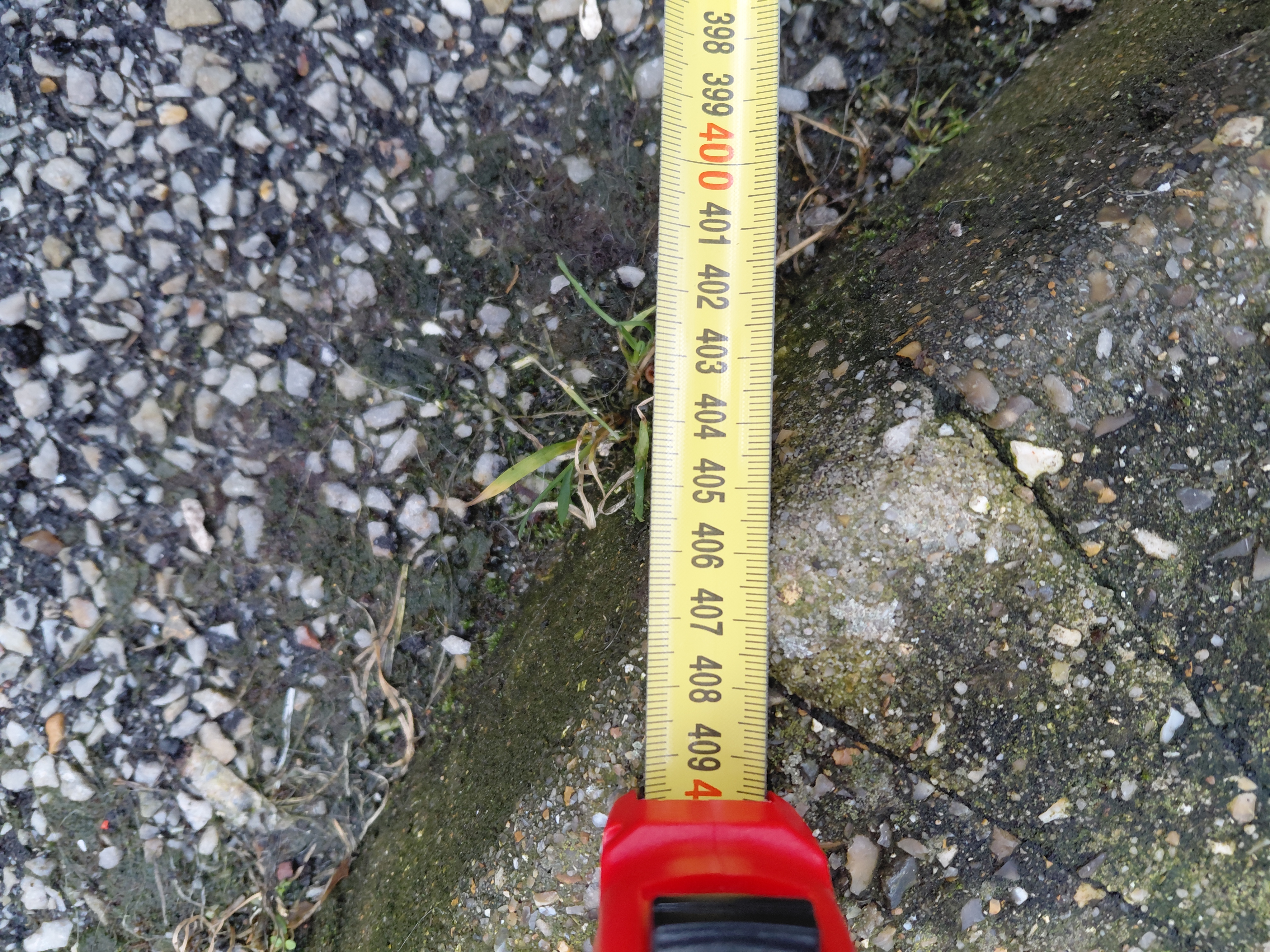 et à 107 cm du rebord en béton qui sépare la rue Maupas du parking.