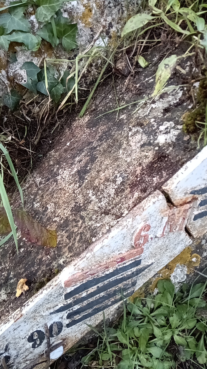 Marque très dégradée, déduction de la position par rapport à des photos plus anciennes.