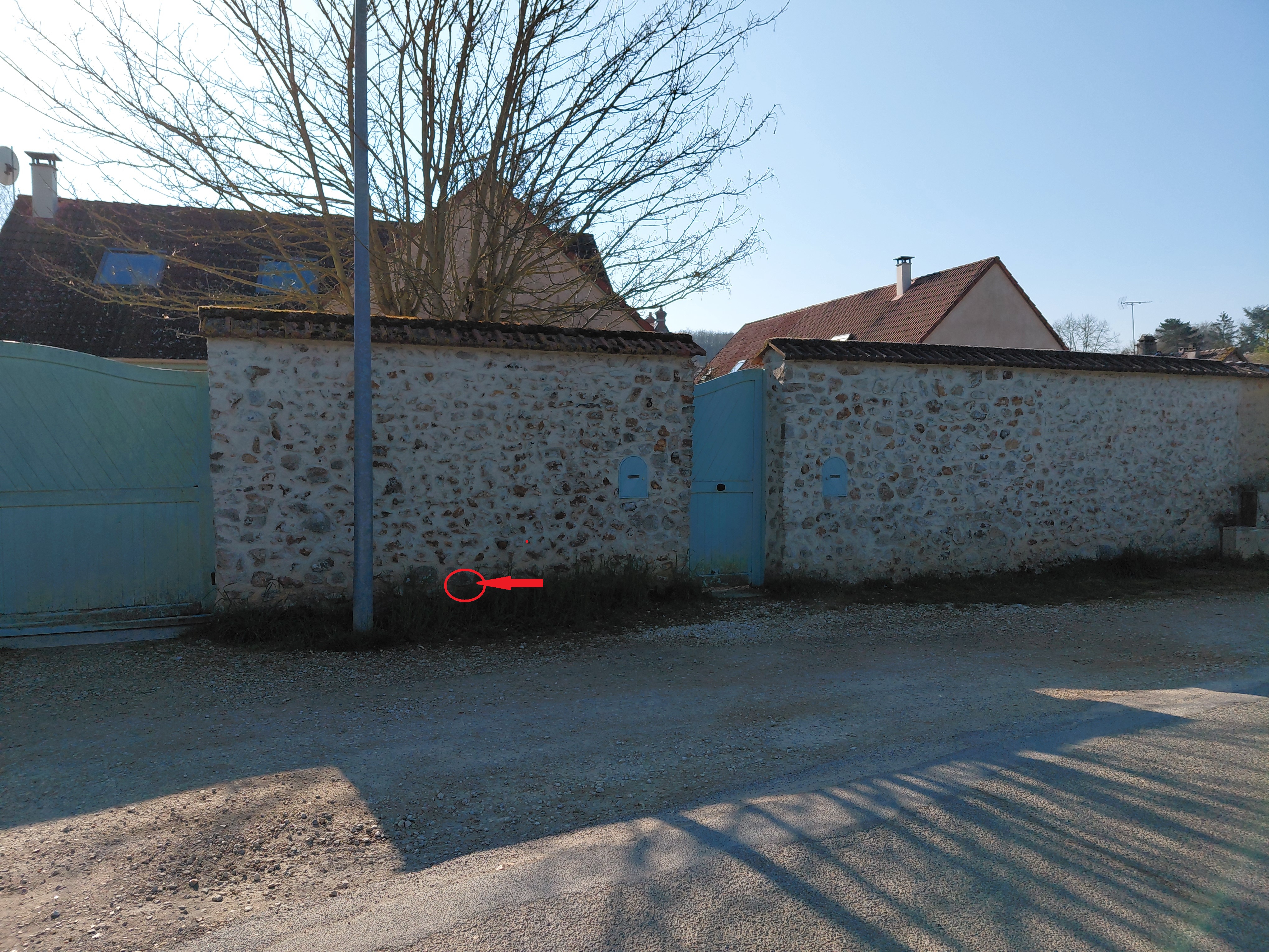 - Commentaires : Entre le portail et le portillon du n°3 de la rue de Chenicourt, à proximité du transformateur de la Tournachère