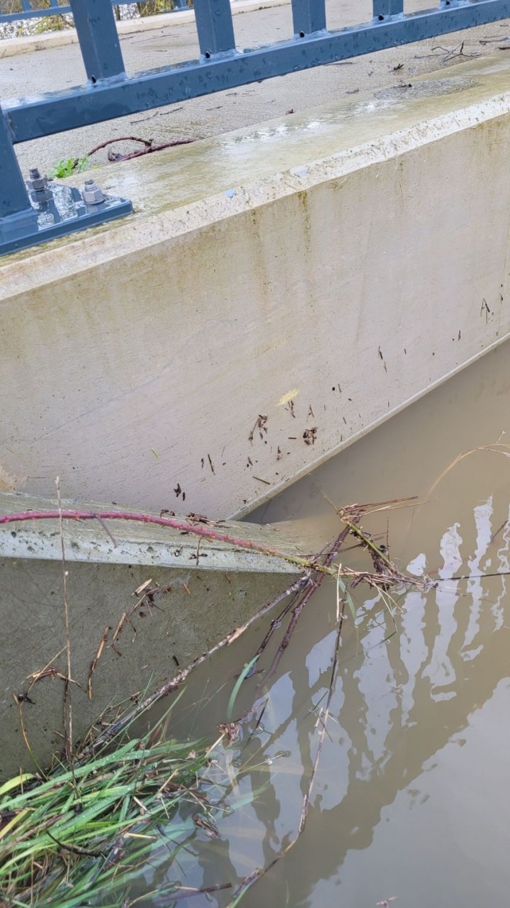 - Description référence du repère : Laisse d'inondation entre les ponts routier et cycliste