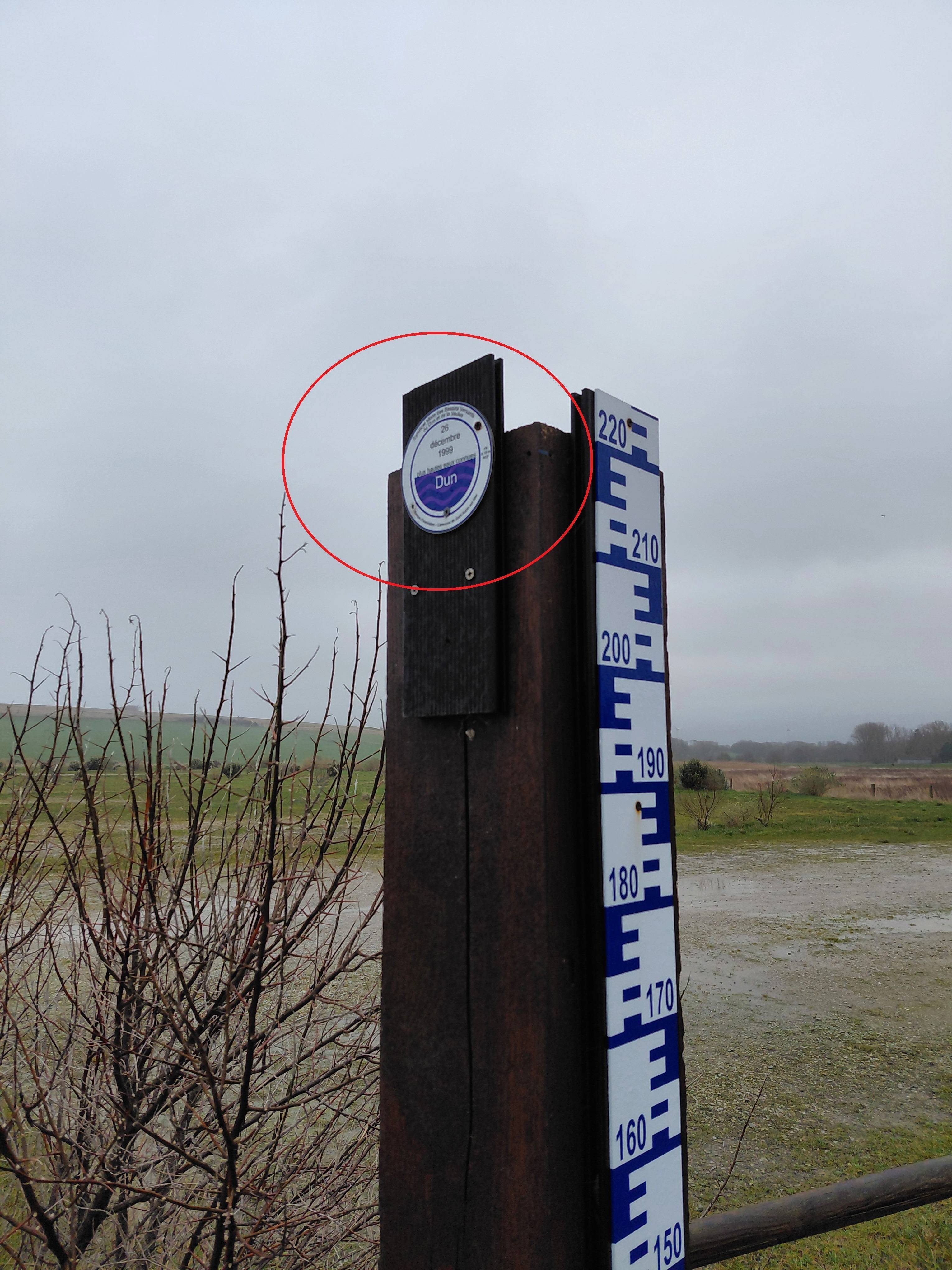 Repère établi par le Syndicat mixte des bassins versants du Dun et de la Veules.