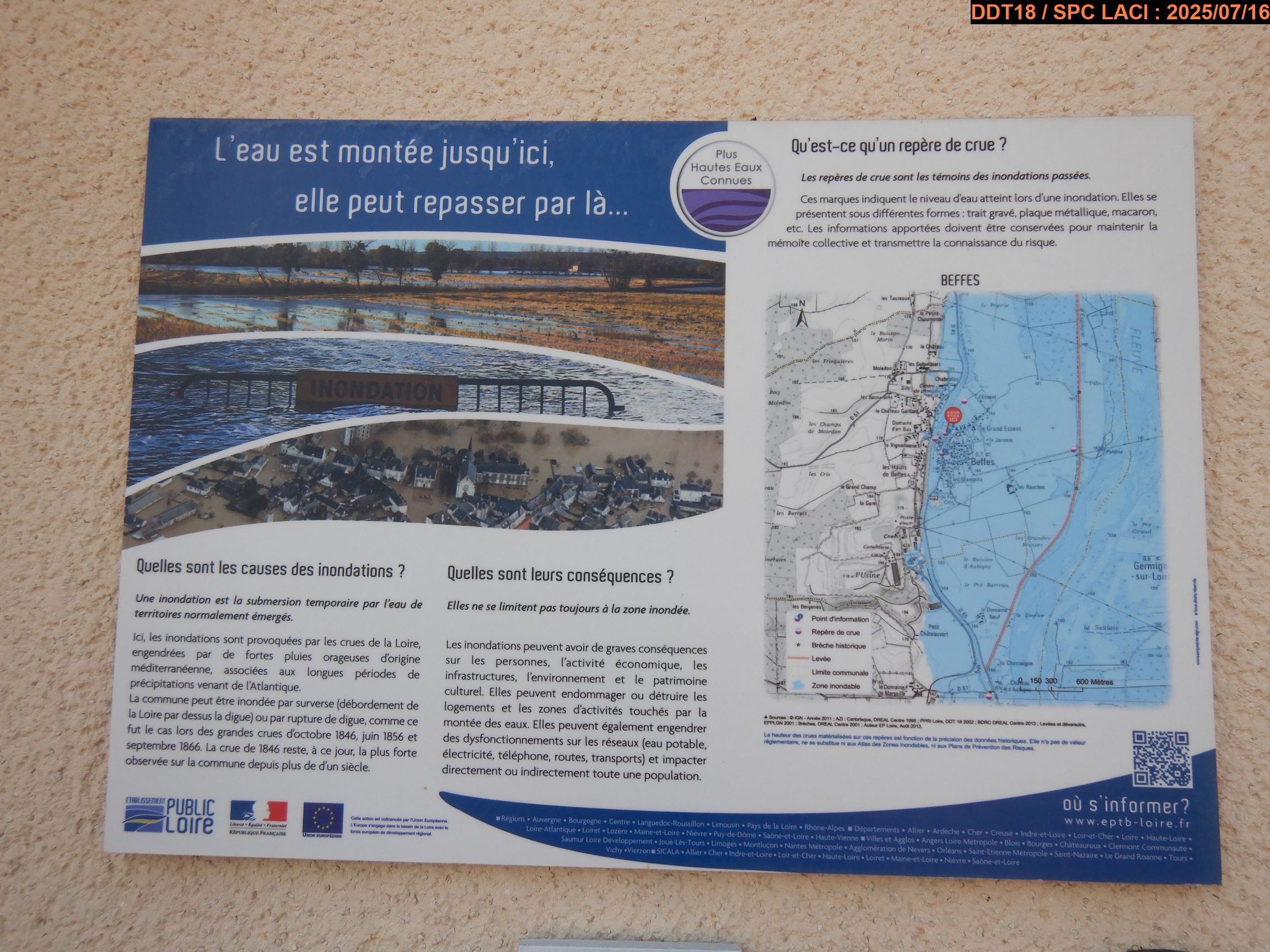 - Commentaires : Sur la façade, à côté de l'entrée de la salle des fêtes de Beffes